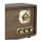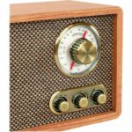 Cuenta con una perilla de volumen que funciona como botón de encendido, un sintonizador AM/FM para navegar por las estaciones y una perilla de graves y agudos para personalizar tu experiencia auditiva. Las perillas tienen una sensación agradable y un ambiente antiguo moderno.