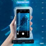 Esta cubierta impermeable para teléfono está diseñada para no obstaculizar el uso de la pantalla táctil bajo el agua. Cuenta con una ventana transparente para no bloquear el uso de la cámara que, además, te permitirá operar perfectamente su teléfono celular, pero no para la huella digital de identificación táctil.