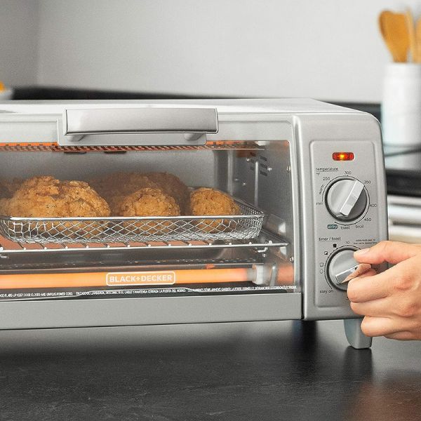 Este práctico electrodoméstico presenta cinco funciones preestablecidas que se adaptan a diversas necesidades culinarias: freír al aire, hornear, asar, tostar y mantener caliente. Desde deliciosas patatas fritas crujientes hasta dorados pollos asados, todo es posible con el Horno Black+Decker Crisp ‘N Bake Air Fry. Asimismo, su capacidad para cuatro rebanadas de pan o incluso una pizza lo hace ideal para comidas rápidas y sabrosas.