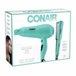 El Kit Conair Teal Styling Collection incluye una secadora de 1875W y una plancha, ambos diseñados para facilitar el peinado diario. En primer lugar, la secadora de 1875W está hecha con cerámica y turmalina, lo que ayuda a reducir el frizz y a mejorar el brillo del cabello. Además, tiene un mango ergonómico, ideal para un uso cómodo y prolongado, y un aro para colgar, lo que facilita su almacenamiento.