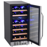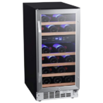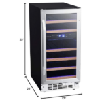 La vinera EdgeStar CWR263DZ es ideal para quienes desean mantener sus vinos en condiciones óptimas. Además, gracias a su diseño compacto de 15 pulgadas de ancho y 32 pulgadas de alto, se adapta fácilmente tanto a espacios integrados como a unidades independientes. Por otra parte, su acabado en acero inoxidable le da un aspecto moderno y elegante, lo que la hace perfecta para cualquier cocina o área de entretenimiento. En consecuencia, su capacidad de 2,9 pies cúbicos permite almacenar hasta 23 botellas de tamaño estándar.