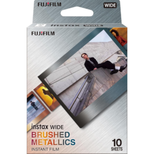 La película fotográfica Fujifilm INSTAX Wide Brushed Metallics es perfecta para capturar tus recuerdos de manera rápida y divertida. Además, su borde metálico degradado oscuro aporta un toque moderno a cada foto. Por lo tanto, es ideal para cualquier ocasión, desde fiestas hasta viajes.