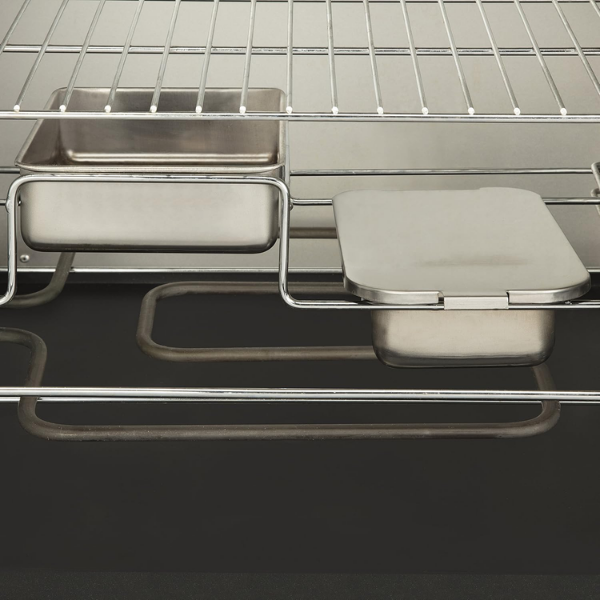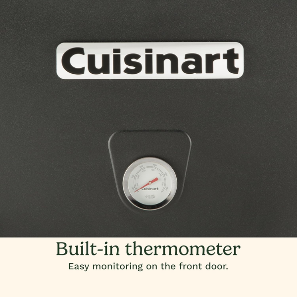 Asimismo, este ahumador cuenta con tres estantes extraíbles, ideales para adaptarse a cortes grandes de carne. De igual manera, estos estantes son aptos para lavavajillas, lo que facilita su limpieza y mantenimiento. A diferencia de otros modelos, el Cuisinart COS-330 incluye un termómetro integrado en la puerta frontal, lo que permite mantener un control preciso de la temperatura durante todo el proceso de cocción. Así, no es necesario abrir la puerta constantemente y se conserva el calor interno.