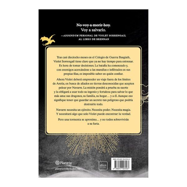 Alas de ónix de Rebecca Yarros es la emocionante continuación de la saga donde Violet Sorrengail enfrenta la batalla más dura de su vida. Con enemigos acercándose y traiciones dentro de sus filas, debe emprender un viaje fuera de Aretia en busca de aliados dispuestos a luchar por Navarre.