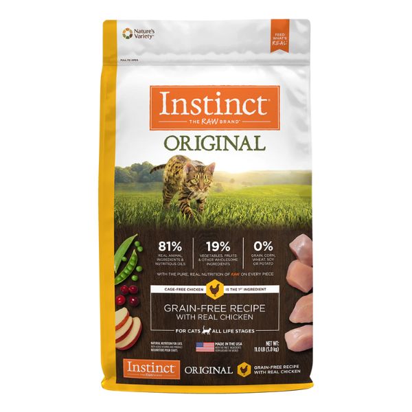 El Alimento Instinct Original Gatos está hecho con ingredientes de alta calidad, destacando el pollo como su principal fuente de proteínas. Sabemos lo importante que es la alimentación adecuada para los gatos, por eso este producto no contiene subproductos, colorantes ni sabores artificiales. Cada bocado proporciona los nutrientes esenciales que tu gato necesita para mantenerse saludable y lleno de vitalidad.