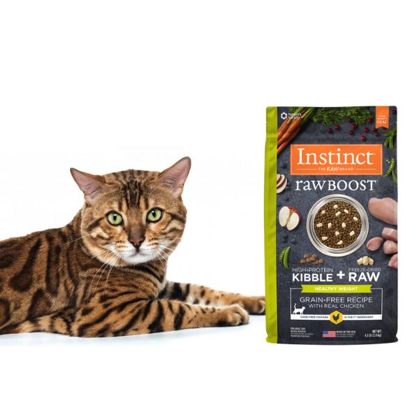 El alimento Instinct Healthy Weight te trae croquetas sin granos con menos grasa y menos calorías. Con piezas crudas liofilizadas puras, deliciosas y completamente satisfactorias, que le da a su mascota una dieta saludable que es altamente nutritiva y completamente satisfactoria. Esta fórmula sin cereales y sin gluten también contiene probióticos para ayudar a mantener la salud digestiva de su felino.