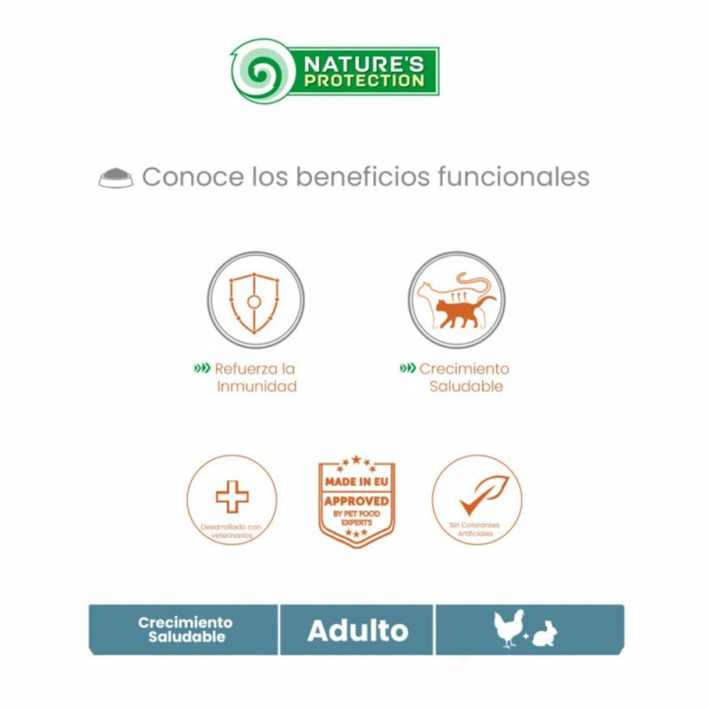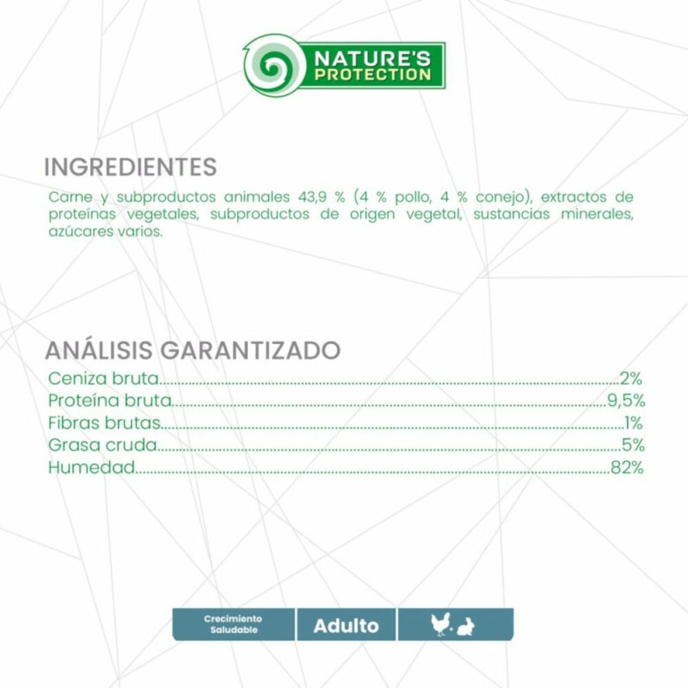Este alimento de 100gr, a base de pollo y conejo en caldo suave, contiene vitaminas y minerales que ayudan a mantener un sistema inmunológico saludable y aseguran un crecimiento y desarrollo saludable para tu peludo pequeño, además, es libre de colorantes y saborizantes artificiales.