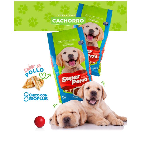 Super Perro Cachorro es una marca de alimento para perros que se enfoca en ofrecer una dieta balanceada y saludable. Brindándole una nutrición súper premium en un alimento de fórmula holística y fácil de digerir para un mantenimiento muscular esquelético equilibrado en razas más jóvenes. Además, el Alimento Super Perro Pollo Cachorro utiliza Bioplus y Dhermadog para una salud cerebral óptima.