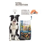 El Alimento Total Nutrition Salmón/Avena para perros contiene como proteína principal Salmón, que es una fuente rica en omega 3, un ácido graso esencial que es fundamental para el desarrollo cerebral y cognitivo de los perros. El DHA (ácido docosahexaenoico) presente en el omega 3, es especialmente importante en el desarrollo del cerebro y la visión.