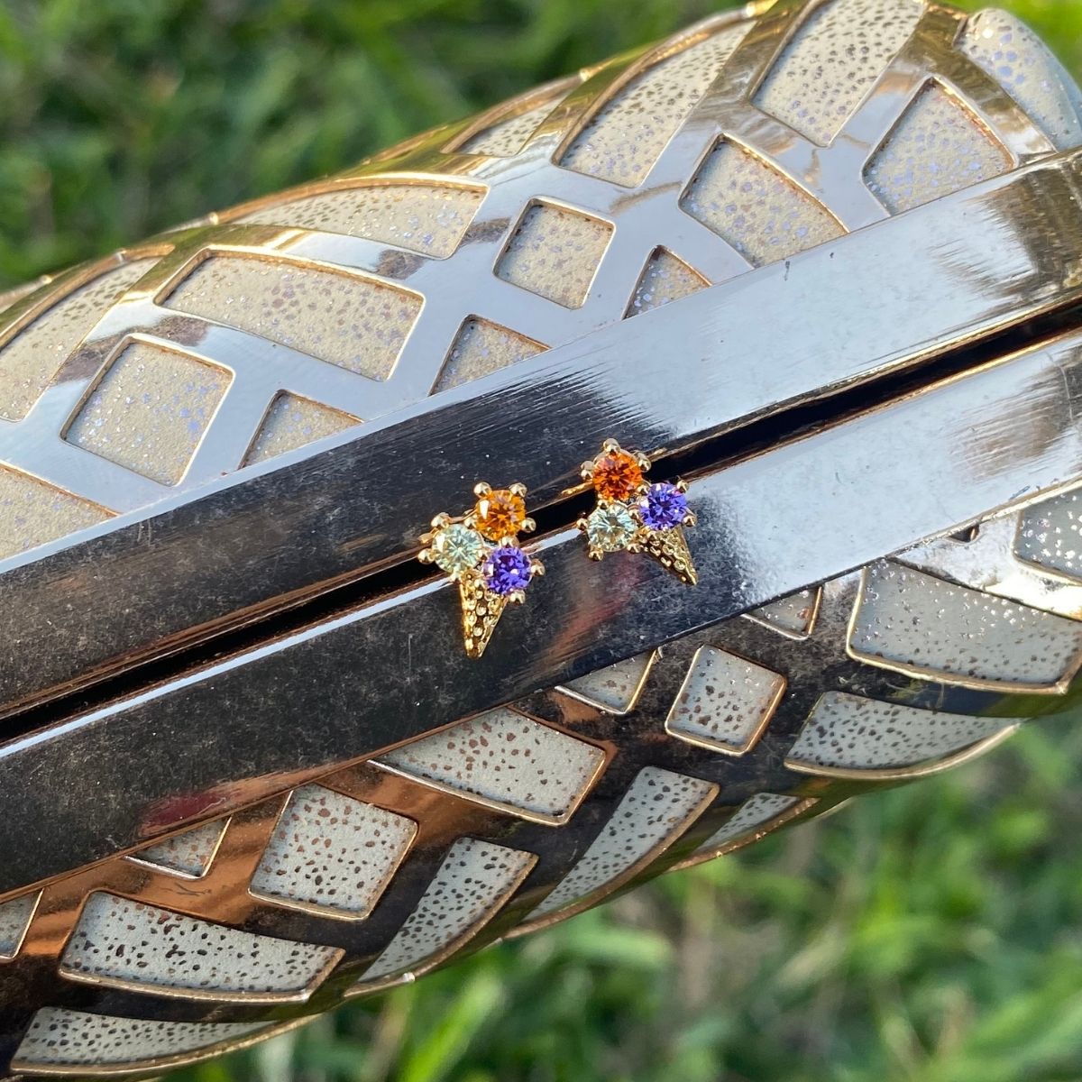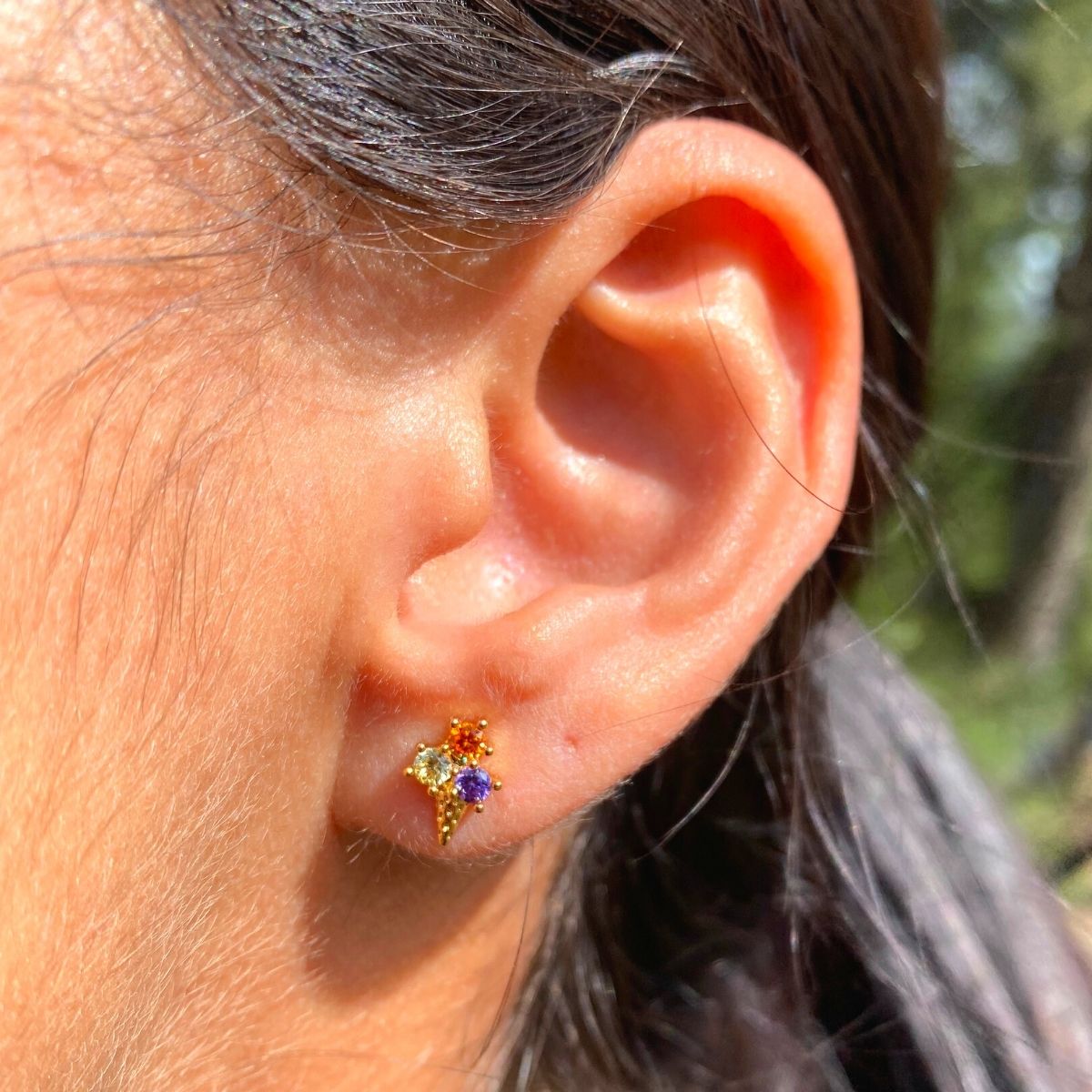 Tienen tres piedras, una en naranja, una violeta y la otra en verde claro, que asemejan las bolitas de helado y una piedra brillante para imitar al cono. Un modelo muy divertido que pueden llevar niñas, adolescentes o mujeres que aman dar a su outfit un toque diferente.