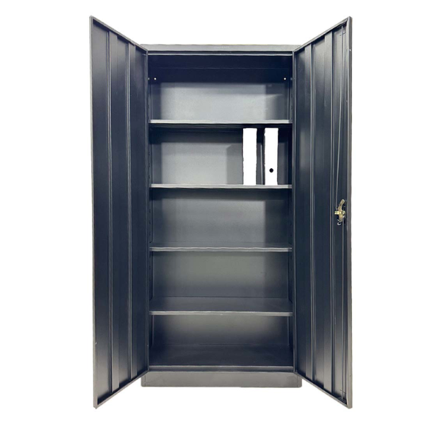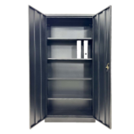 Por otra parte, este armario incluye dos puertas con llavín, ofreciendo así mayor seguridad y protección para tus pertenencias. A su vez, cuenta con cinco estantes ajustables en altura, lo que facilita la organización del espacio interior según tus necesidades. De esta manera, podrás guardar carpetas, archivos u otros materiales sin dificultad, manteniendo todo siempre al alcance.