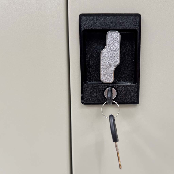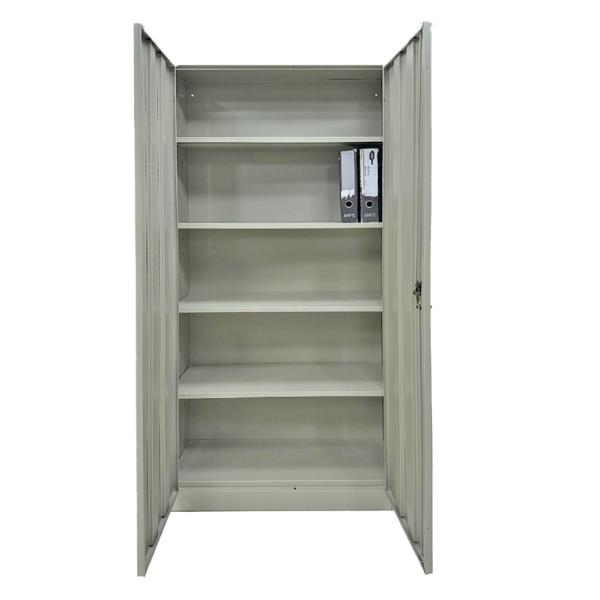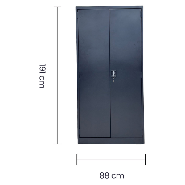 Por otra parte, este armario incluye dos puertas con llavín, ofreciendo así mayor seguridad y protección para tus pertenencias. A su vez, cuenta con cinco estantes ajustables en altura, lo que facilita la organización del espacio interior según tus necesidades. De esta manera, podrás guardar carpetas, archivos u otros materiales sin dificultad, manteniendo todo siempre al alcance.