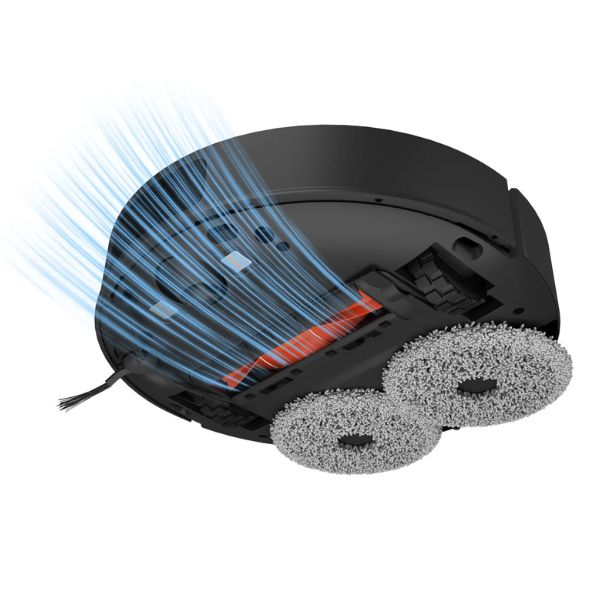 Su depósito de polvo de 400 ml y depósito de agua de 270 ml permiten limpiar durante varios días sin tener que vaciar o rellenar constantemente. Asimismo, la nueva barrera antipolvo mantiene la suciedad dentro del depósito, evitando la contaminación secundaria. Por otra parte, la ruta en zigzag para aspirar y la ruta en forma de Y para fregar simulan la limpieza manual, lo que aumenta la eficiencia y elimina las manchas de forma más completa.