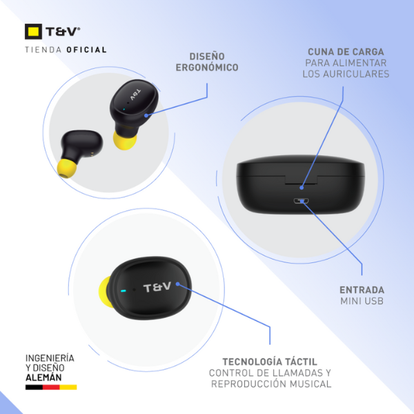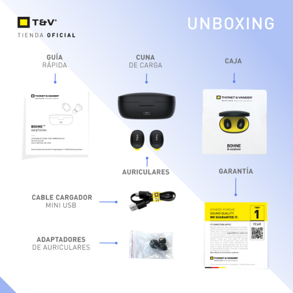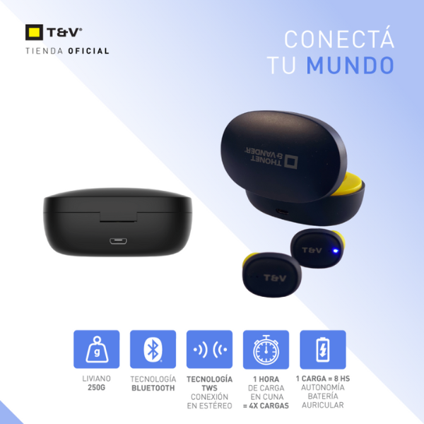 Los audífonos Thonet & Vander Bohne combinan diseño compacto, sonido claro y conectividad Bluetooth 5.0. Con su resistencia al agua, controles táctiles y estuche de carga rápida, ofrecen comodidad, estilo y potencia en cualquier lugar, garantizando una experiencia musical continua y práctica.