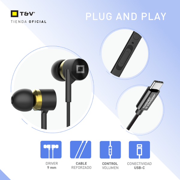 Con una conexión USB-C moderna, estos audífonos son totalmente plug and play, por lo que podrás usarlos sin configuraciones adicionales. Además, cuentan con un micrófono incorporado y controles integrados para ajustar el volumen, pausar, avanzar o retroceder pistas con facilidad, lo que permite una experiencia práctica y fluida en todo momento.