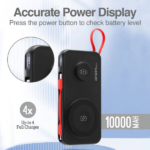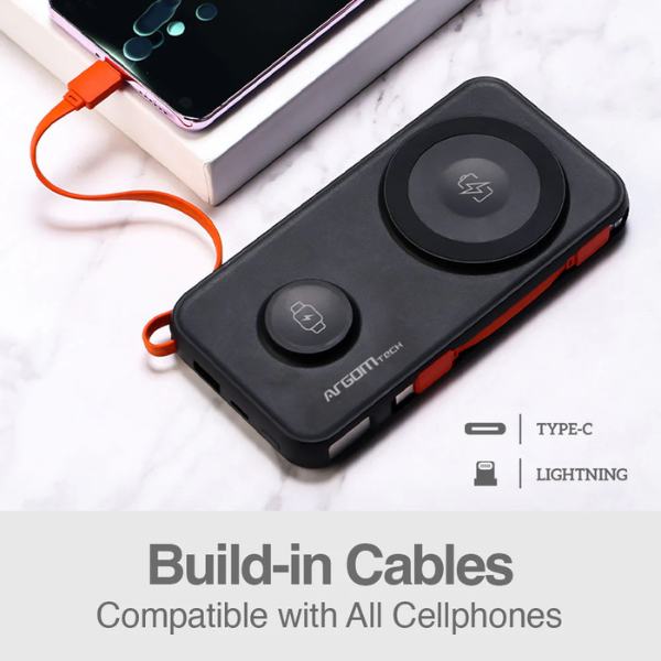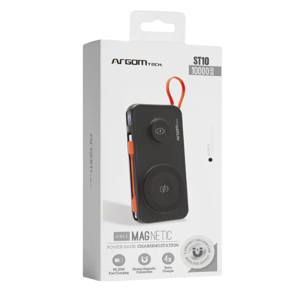 El Banco de energía ArgomTech ST10 4 en 1 Magnético de 10 000 mAh es la solución ideal para mantener tus dispositivos siempre cargados. Además, gracias a su batería de 10 000 mAh, puedes cargar tu teléfono varias veces sin preocuparte. Por otro lado, su carga inalámbrica magnética de 15 W permite cargar dispositivos compatibles de manera rápida y sencilla. En consecuencia, el ST10 resulta perfecto para quienes buscan comodidad y eficiencia al mismo tiempo.