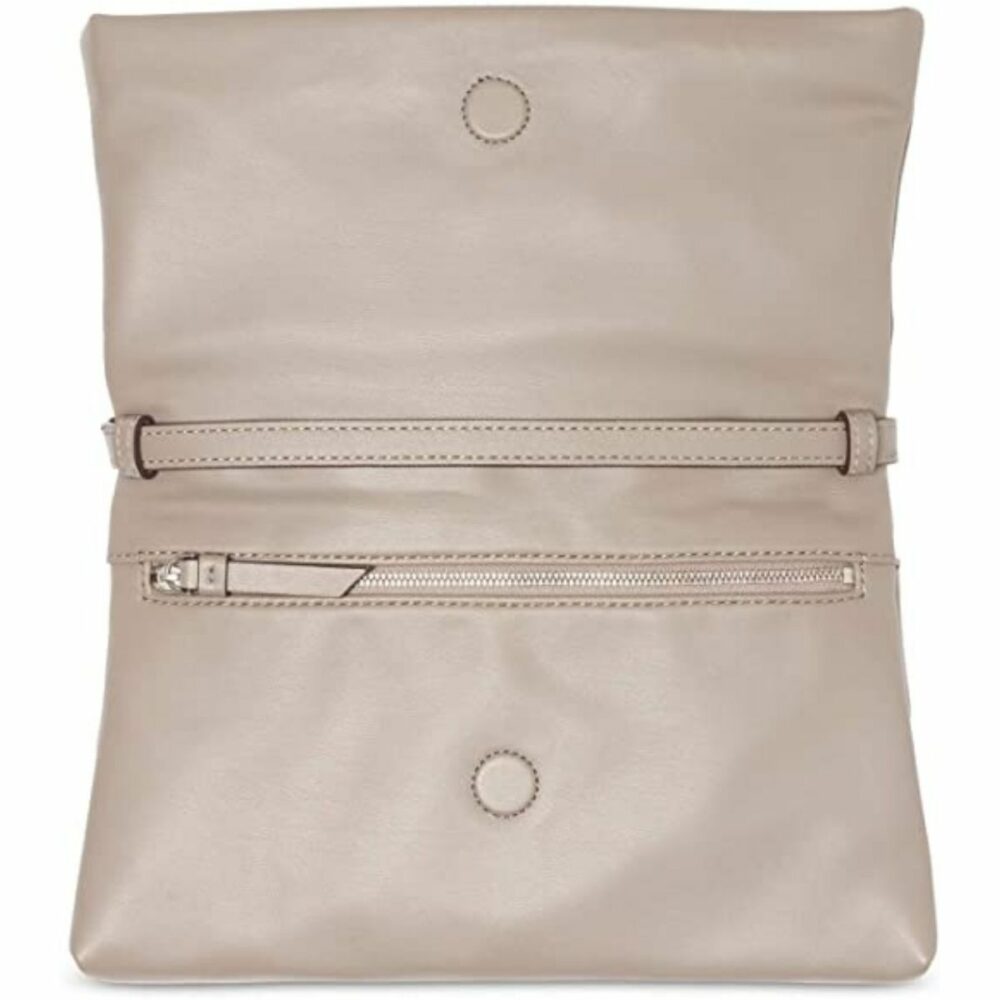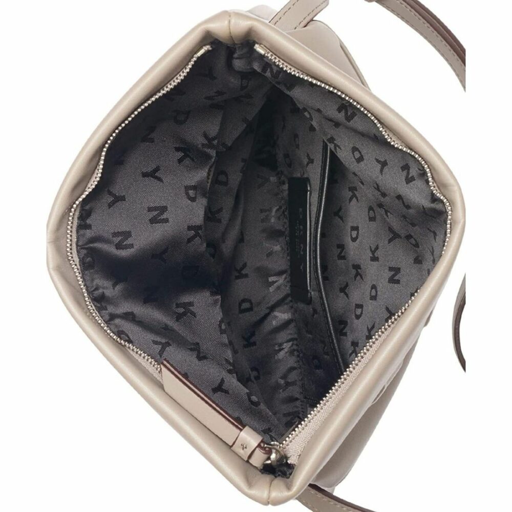 Cuenta con una hebilla de tono plateado pulido y un logotipo de la marca DKNY en relieve. Cierre magnético y solapa de cierre con cremallera, un bolsillo con cremallera interior y un bolsillo abierto. Ideal para uso diario, ya que podés combinarlo con facilidad.