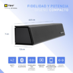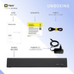 Incluye dos altavoces de 2″ para un sonido equilibrado, control remoto, cable AUX y fuente de alimentación. Además, sus dimensiones compactas de 43.5 x 7.0 x 7.5 cm y peso de 1.06 kg facilitan su ubicación en cualquier espacio. Por ello, la Balken es la solución perfecta para disfrutar de un sonido impecable, potente y conveniente en cualquier lugar.