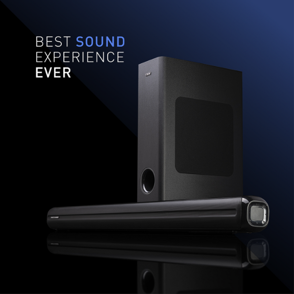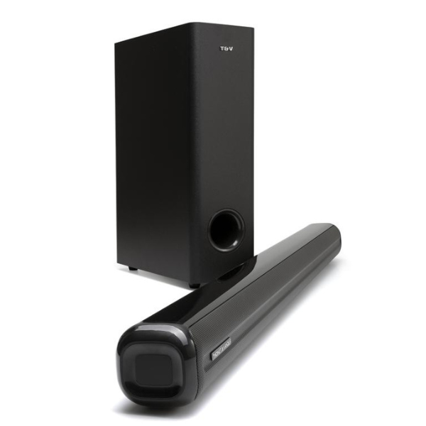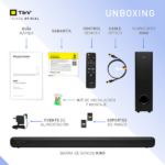 - Sistema: 2.1 (barra de sonido de 2 canales + subwoofer).