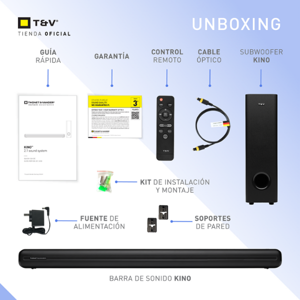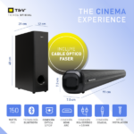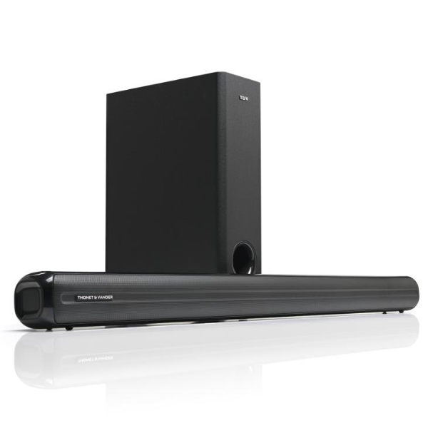 Vive el sonido como nunca antes con la Barra de Sonido Kino de Thonet & Vander. Además, este sistema 2.1 combina la barra de sonido de dos canales con un subwoofer potente para brindar 150W de audio claro y envolvente.