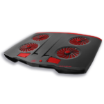 Por otro lado, cuenta con un botón para ajustar la velocidad de los abanicos y la iluminación LED roja. De esta manera, puedes personalizar la experiencia según tus necesidades, ya sea un enfriamiento más intenso o un ambiente más llamativo. Además, tiene ángulos ajustables de 10º, 15º y 25º, lo que mejora la postura y reduce la fatiga mientras trabajas o juegas.