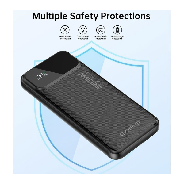 Además , la Batería Choetech, cuenta con múltiples protecciones, como protección contra sobrecalentamiento y cortocircuitos. Esto garantiza que tus dispositivos estén seguros mientras se cargan. Por lo tanto , puedes tener tranquilidad al usar esta batería en cualquier situación. De esta manera , puedes concentrarte en lo que realmente importa sin preocuparte por la seguridad de tus dispositivos.