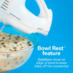 Y también tiene un diseño con Bowl Rest, lo que hace que la batidora se apoye en el borde del bol para que no manches la mesa mientras trabajas. Además, los accesorios son fáciles de quitar y limpiar, lo que mejora la experiencia en la cocina.