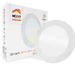 El bombillo inteligente Nexxt Home Smart Downlight CCT 6″ MM106NXT62 es perfecto para modernizar tu hogar. Puedes encender, apagar y ajustar la luz desde tu celular con la app Nexxt Home. También es compatible con Alexa y Google Assistant, así que puedes controlarlo con tu voz sin moverte.