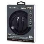 Con una longitud de 3 metros (10 pies), este cable ofrece libertad para conectar tus dispositivos aunque estés lejos del enchufe. En conclusión, el ARG-CB-0074BK DuraSpeed combina velocidad, resistencia y confiabilidad, haciendo que tu experiencia de carga y sincronización sea más rápida, segura y eficiente.