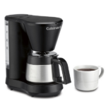 La cafetera Cuisinart de 5 tazas con jarra de acero inoxidable es ideal para espacios pequeños, ya que su diseño compacto ocupa poco lugar en la cocina, pero mantiene toda la funcionalidad de una cafetera de tamaño completo. Además, gracias a su jarra de acero inoxidable con pico antigoteo y protección para los nudillos, sirve el café de manera limpia y segura, lo que garantiza una experiencia más cómoda al preparar tu bebida favorita.