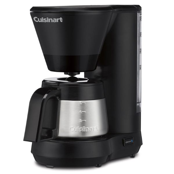 La cafetera Cuisinart de 5 tazas con jarra de acero inoxidable es ideal para espacios pequeños, ya que su diseño compacto ocupa poco lugar en la cocina, pero mantiene toda la funcionalidad de una cafetera de tamaño completo. Además, gracias a su jarra de acero inoxidable con pico antigoteo y protección para los nudillos, sirve el café de manera limpia y segura, lo que garantiza una experiencia más cómoda al preparar tu bebida favorita.