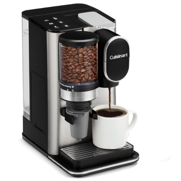 La cafetera Cuisinart con molinillo DGB-2 es perfecta para preparar café de una sola porción de manera rápida y sencilla. Además, cuenta con tres tamaños de taza: 8, 10 o 12 onzas, y es compatible con cualquier cápsula de café de una sola porción, incluidas las cápsulas Keurig K-Cup. Por lo tanto, gracias a su diseño compacto, se adapta fácilmente a cualquier cocina sin ocupar mucho espacio.