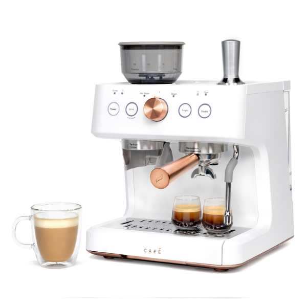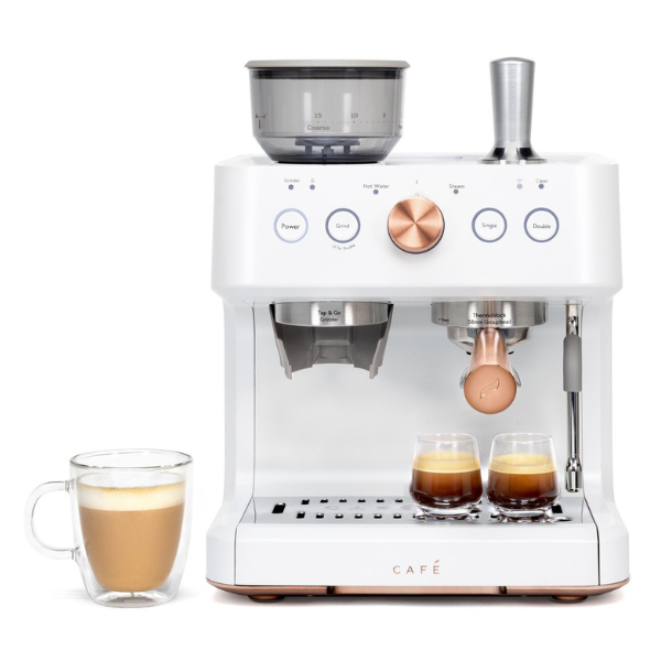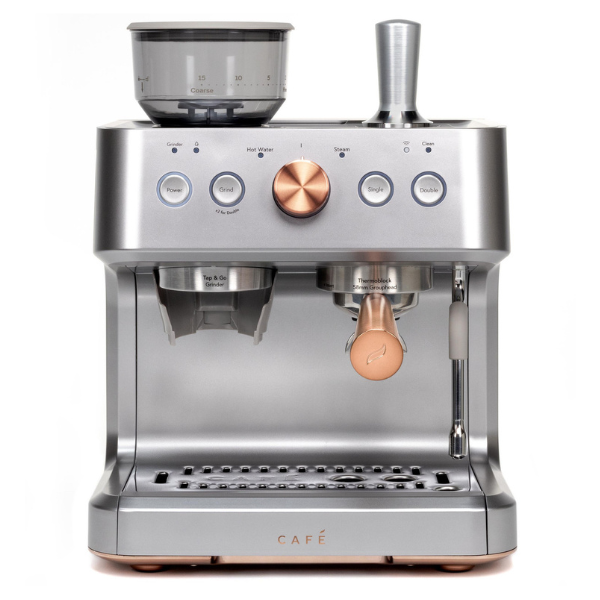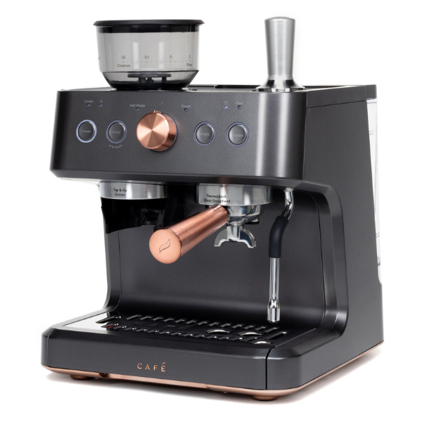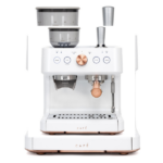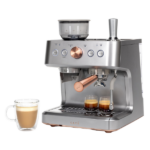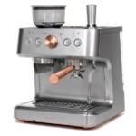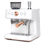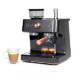 La cafetera espresso semiautomática Café Bellissimo está diseñada para que disfrutes de un café con calidad de barista en la comodidad de tu hogar. En primer lugar, gracias a su potente bomba italiana de 15 bares, asegura una extracción precisa que resalta el sabor y el aroma de cada taza. Además, su elegante diseño en color negro mate con detalles en cobre cepillado no solo aporta modernidad, sino que también añade un toque de sofisticación que realza cualquier cocina.