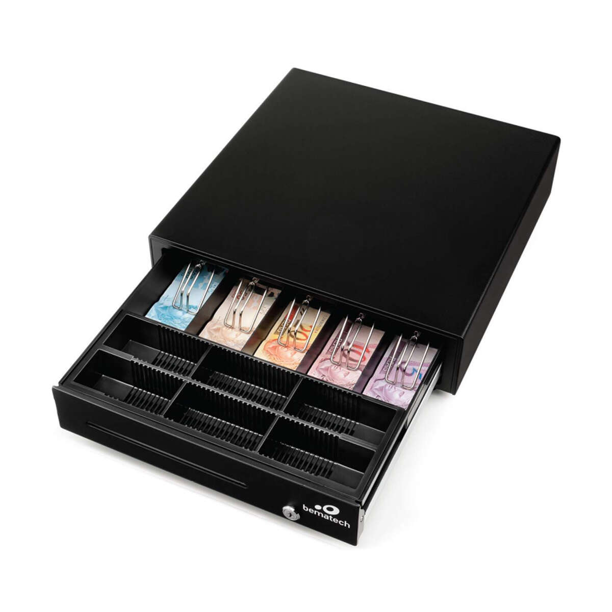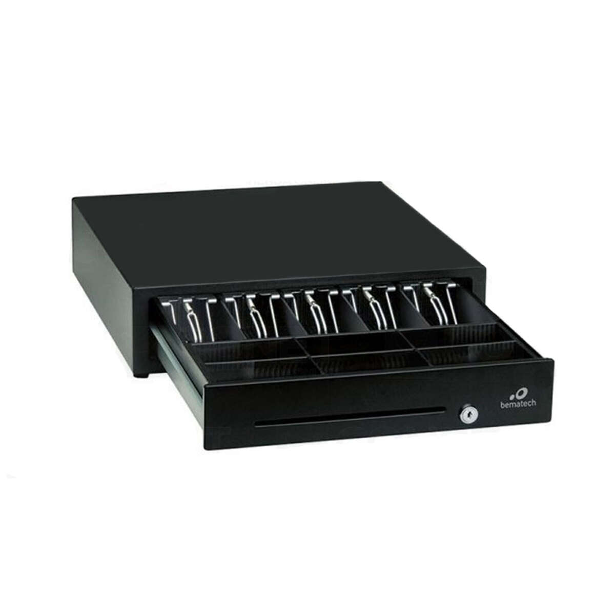 La caja Bematech posee un tamaño compacto, que minimiza la cantidad de espacio necesaria para su punto de venta. La profundidad en sus compartimientos permite manejar un gran número de billetes y monedas. Con engranajes de acero y pintura de fuerte acabado permite apreciar la alta calidad de este cajón de dinero.