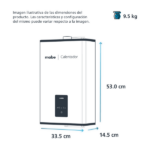 Con dimensiones compactas de 53 cm de alto, 33.5 cm de ancho y 14.5 cm de profundidad, y un peso de solo 9.5 kg, este calentador se adapta fácilmente a cualquier espacio. Además, su tecnología Econfort ayuda a ahorrar agua y energía, y es compatible con calentadores solares. De esta manera, siempre tendrás agua caliente sin gastar de más y sin necesidad de baterías. Así, podrás disfrutar de mayor confort en cada baño.