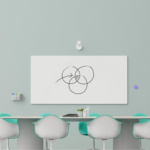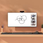El botón inalámbrico incluido permite compartir el contenido de la pizarra de manera fácil y rápida. Por otro lado, la cámara proporciona un efecto de transparencia que permite a los participantes ver el contenido de la pizarra mientras observan al presentador. Adicionalmente, la segmentación de imágenes de la IA ayuda a reconocer y mostrar notas adhesivas, mejorando la visibilidad del contenido.
