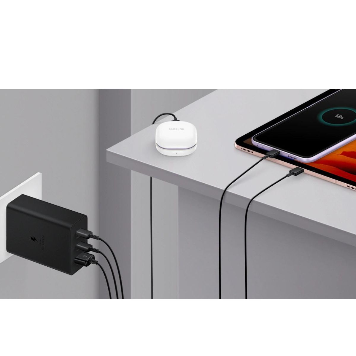 - Características:(USB-C1) Carga súper rápida 2.0 máx. 45 W, PD 3.0 PDO máx. 65 W, PPS máx. 45 W / (USB-C2) Carga súper rápida máx. 25 W, PD 3.0 PDO, PPS máx. 25 W / (USB-A) AFC, control de calidad máx. 15 W / (C1+C2) 40 W + 25 W / (C1+A) 50 W + 15 W / (C2+A) 25 W + 15 W / (todos) 35 W + 25 W + 15 W