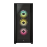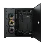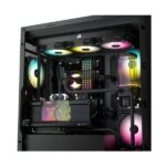 Además, el Corsair 5000X viene con tres ventiladores RGB pre instalados, los cuales se pueden controlar a través del software iCUE de Corsair para personalizar su apariencia y efectos de luz. También cuenta con paneles de vidrio templado en el frente, lateral y superior, lo que te permite ver tus componentes dentro y agregar un toque de estilo adicional.