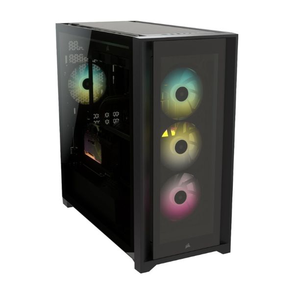 Además, el Corsair 5000X viene con tres ventiladores RGB pre instalados, los cuales se pueden controlar a través del software iCUE de Corsair para personalizar su apariencia y efectos de luz. También cuenta con paneles de vidrio templado en el frente, lateral y superior, lo que te permite ver tus componentes dentro y agregar un toque de estilo adicional.