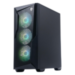 Sumado a esto, sus 32 GB de memoria DDR5 5600 (2×16 GB) ofrecen una gran capacidad para manejar múltiples aplicaciones y juegos exigentes sin dificultades. Para mantener el rendimiento térmico, el sistema de refrigeración ARGB Fan Air Cooling es eficiente y, además, le da un toque estético atractivo al equipo.