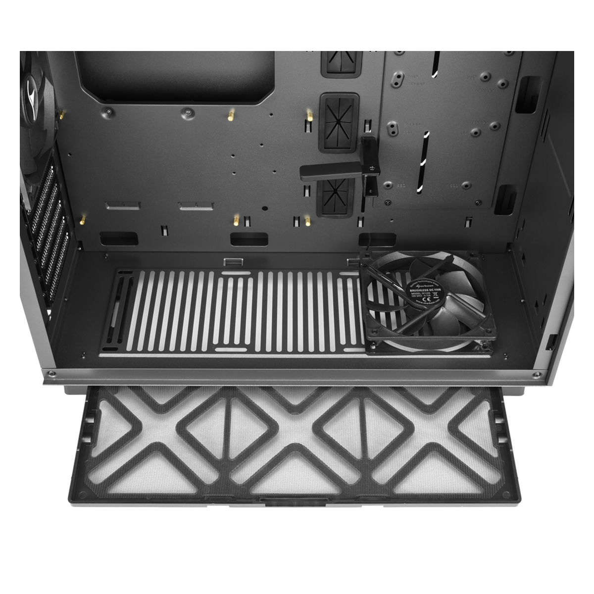 - Ventilador de panel inferior 1x 120 mm ventilador (preinstalado).