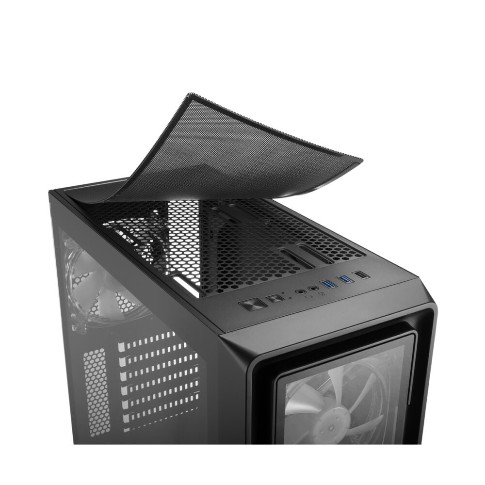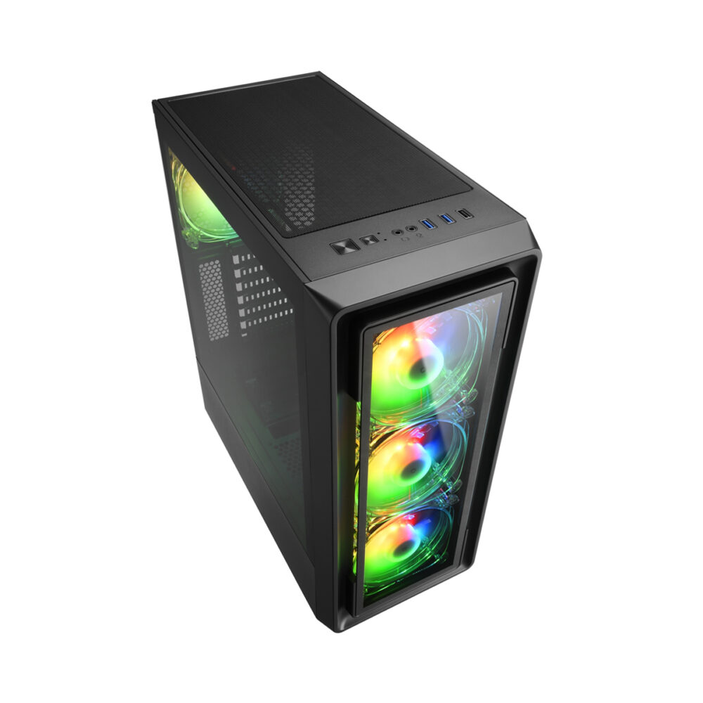 - Ventilador de panel frontal 3x Ventilador RGB direccionable de 120 mm (preinstalado).