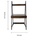 Con dimensiones de 74 cm x 48 cm x 147,5 cm, este escritorio es práctico y funcional. Está fabricado en metal y madera aglomerada laminada en melamina, y se entrega armado dependiendo de la zona. Finalmente, cuenta con 12 meses de garantía contra defectos de fábrica, ofreciéndote seguridad y tranquilidad al momento de tu compra.