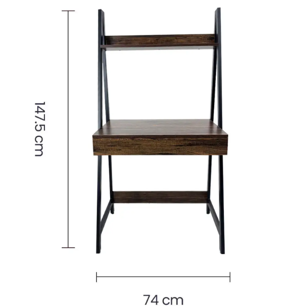 Este escritorio cuenta con una gaveta y un estante, lo que permite organizar tus artículos de oficina, documentos o elementos decorativos. De esta manera, puedes mantener todo a la mano y tener un espacio limpio y agradable para concentrarte. Asimismo, su diseño es versátil y funciona tanto para laptops como para computadoras de escritorio de cualquier tamaño.