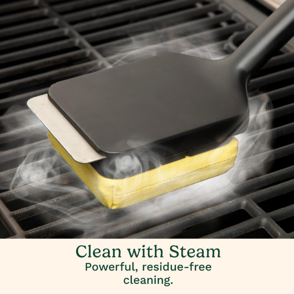 El cabezal de limpieza, por su parte, está fabricado con silicona y envuelto en una resistente fibra de aramida, de modo que ofrece durabilidad y resistencia al calor. Gracias a esto, podrás limpiar a fondo sin dañar la superficie de la parrilla. Solo necesitas sumergir el cabezal en agua y frotar sobre la parrilla caliente para activar el poder del vapor. Así, la grasa y los restos se eliminan fácilmente, dejando las rejillas como nuevas.