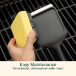 Finalmente, el Cuisinart Grill Renew destaca por su fácil mantenimiento. Por un lado, el cabezal desmontable puede lavarse en el lavavajillas, mientras que su estructura sin cerdas evita la acumulación de residuos. Por otro lado, su atractivo color negro y amarillo aporta un estilo moderno. En conclusión, este cepillo para parrilla es una opción segura, eficaz y duradera para quienes desean mantener su parrilla impecable en cada uso.