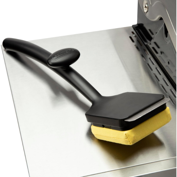 Además, el mango ergonómico de acero inoxidable y plástico proporciona un agarre cómodo y firme. Debido a su diseño arqueado y a la perilla central, ofrece un control superior y un mejor apalancamiento, por lo que limpiar la parrilla resulta mucho más sencillo. Incluso la suciedad más difícil se elimina sin esfuerzo, lo que convierte el proceso en algo práctico y rápido.