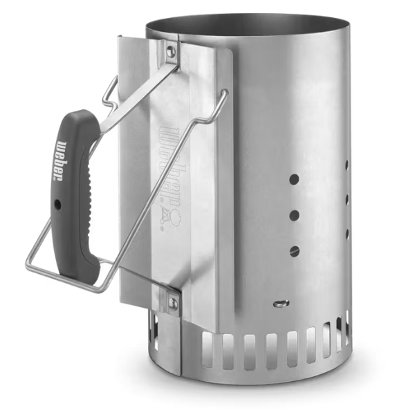 La chimenea de encendido Weber Rapidfire es, sin duda, la herramienta ideal para comenzar cualquier barbacoa con carbón de manera rápida y sencilla. Con solo colocar carbón y una pastilla de encendido en la base, en pocos minutos tendrás las brasas listas para cocinar. Por lo tanto, este accesorio es perfecto para quienes buscan eficiencia y comodidad sin complicarse.