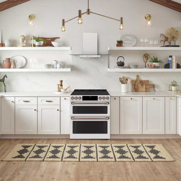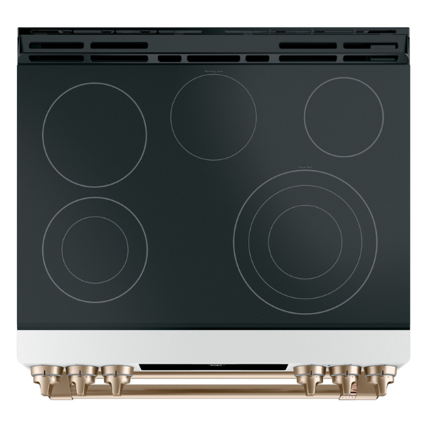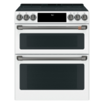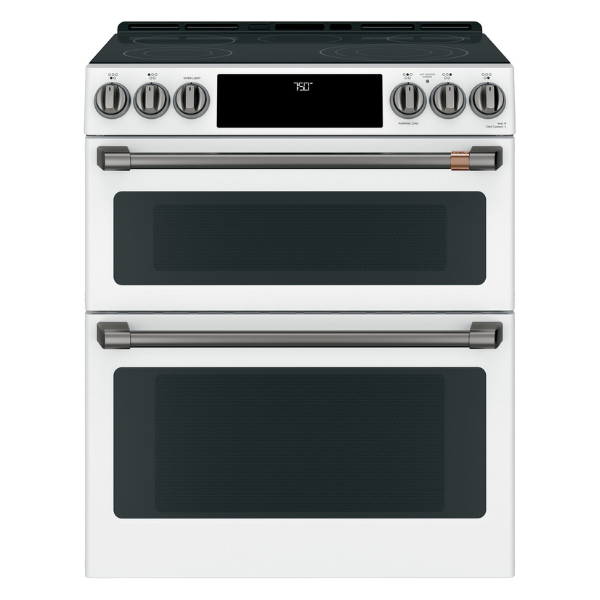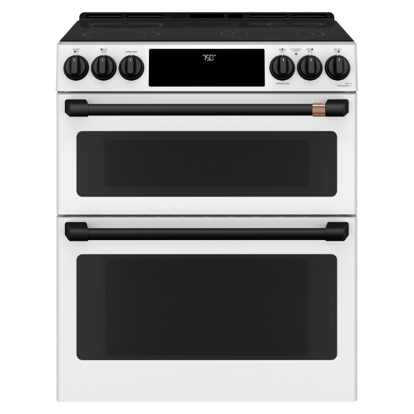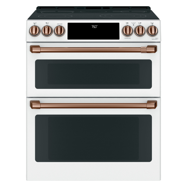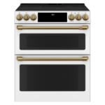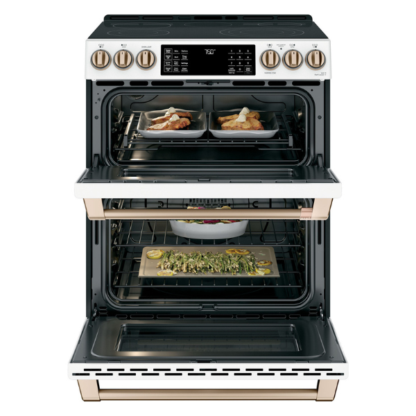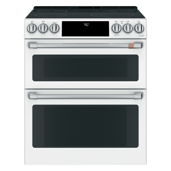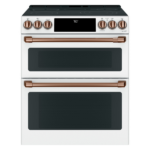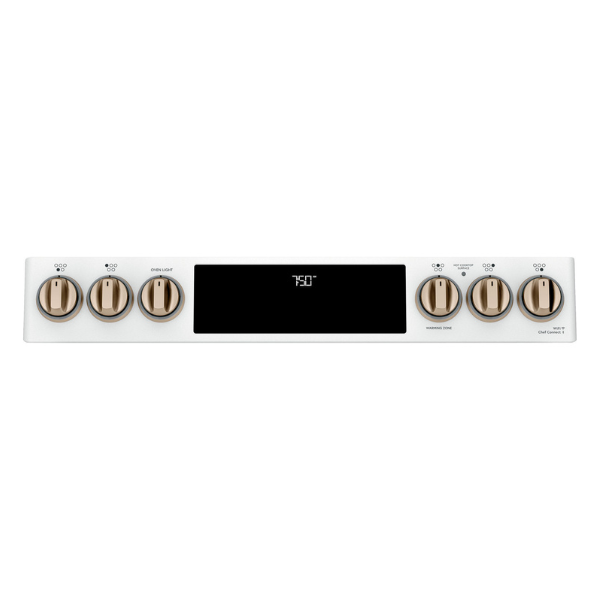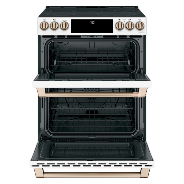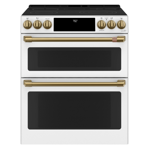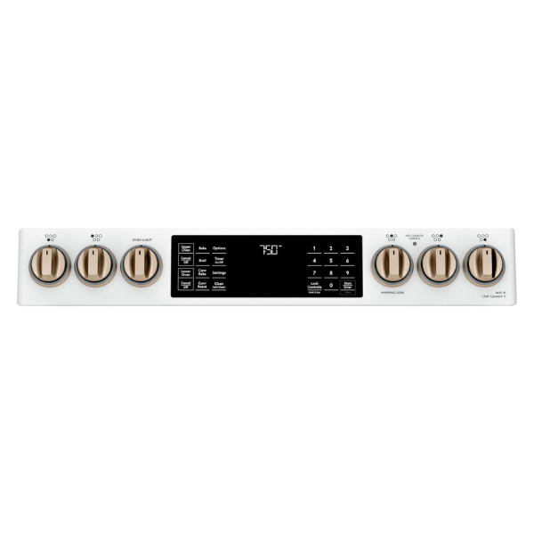 La Cocina Café de 30″ con horno doble CES750P4MW2 combina elegancia y tecnología para tu cocina. Además, su diseño en blanco mate con perillas y mangos en bronce cepillado le da un toque moderno y sofisticado. Por otra parte, su instalación al ras y recorte independiente permite que se integre perfectamente en cualquier espacio.