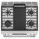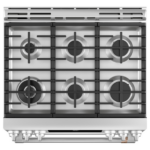 Por otro lado, su estufa de gas con seis quemadores sellados brinda gran versatilidad. Desde un quemador de tres anillos con 21,000 BTU para hervir rápidamente, hasta un quemador de 5,000 BTU perfecto para cocinar a fuego lento. Además, incluye una plancha de hierro fundido que permite variar la preparación de alimentos con facilidad.